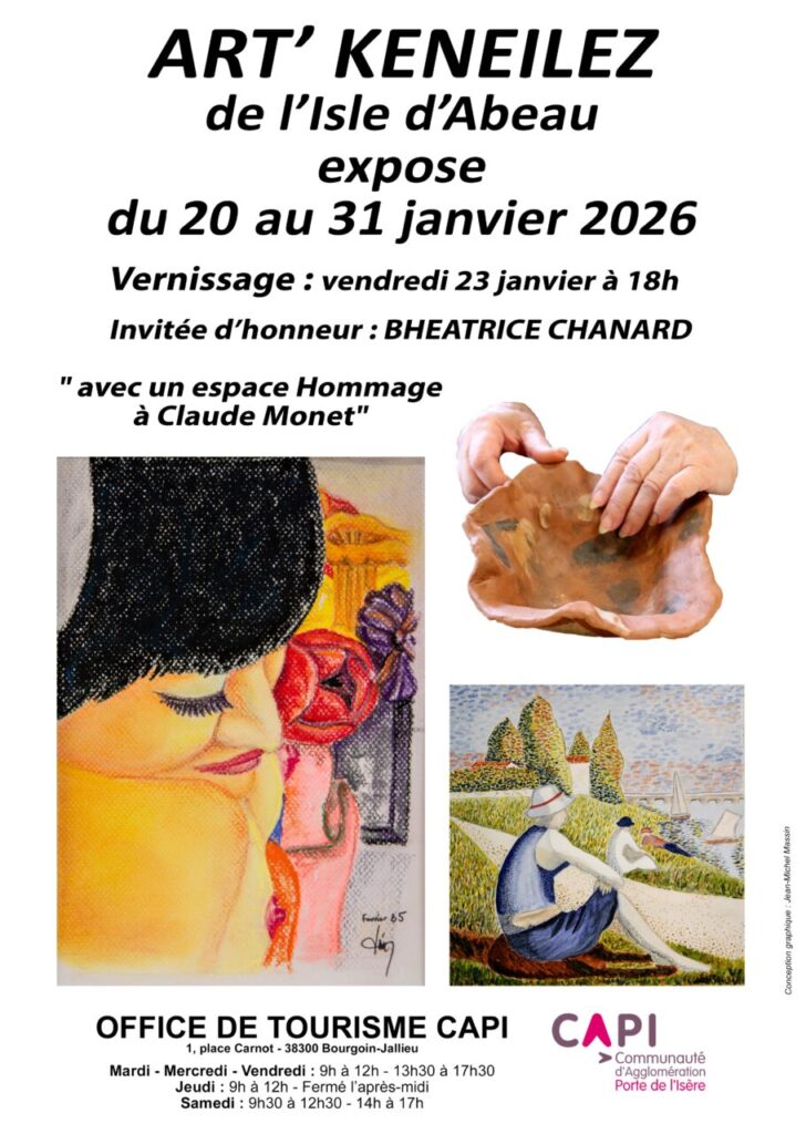 ART’KENEILEZ est une association d’arts plastiques de L’Isle d’Abeau qui vous présentera du 20 au 31 janvier 2026 les œuvres réalisées par leurs adhérents enfants et adultes.