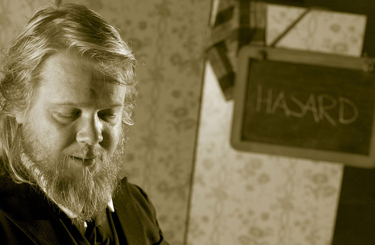 Jani Nuutinen, alchimiste et docteur en sciences occultes, bonimenteur de foire au léger accent finnois et au regard bleu acier, sort de sa valise potions étranges, boîtes mystérieuses et dés pour jouer avec nos sens.